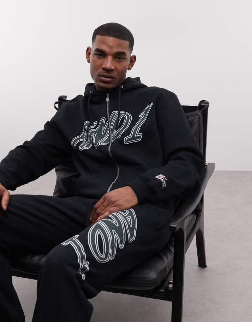 Sudadera negra con capucha, cremallera y logo de AND1 (parte de un conjunto)