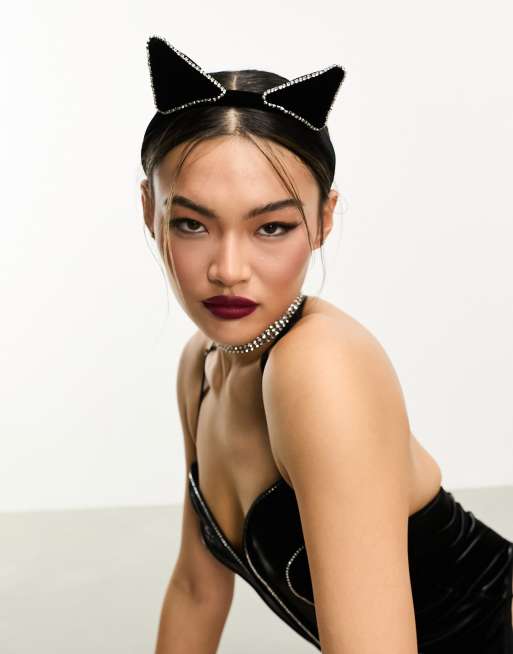 Diadema negra de terciopelo con orejas de gato y detalle de strass para Halloween de Ann Summers