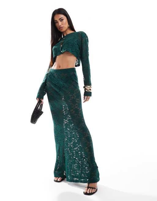 Falda larga verde esmeralda de corte recto de encaje exclusiva de Aria Cove (parte de un conjunto)
