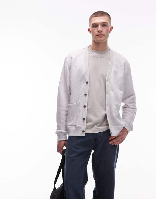Cárdigan gris claro con cuello de pico de tejido de rizo de grosor medio de ARKET