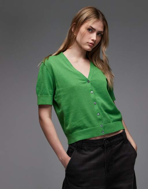 Cárdigan verde de manga corta de punto de algodón fino puro de ARKET