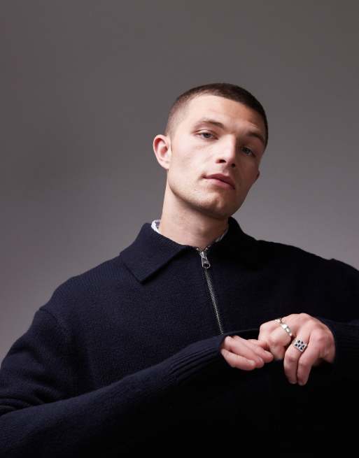 Jersey azul marino extragrande con media cremallera de lana de ARKET