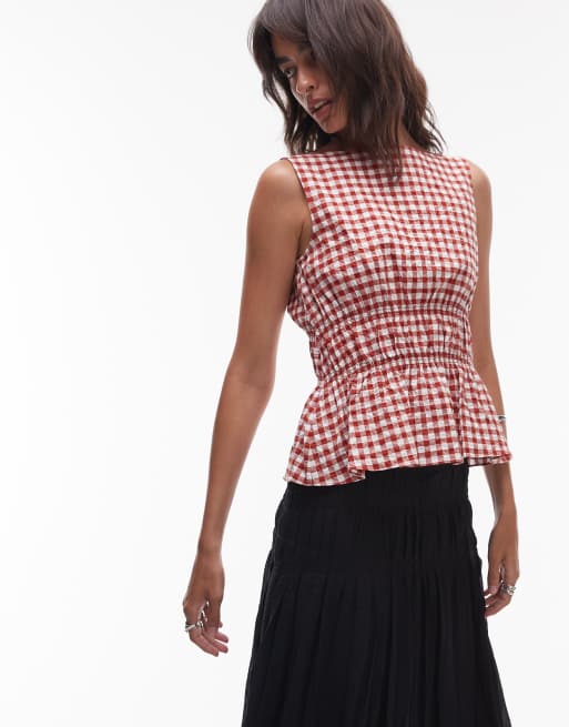Top a cuadros vichy rojos y blancos con cuerpo fruncido de tejido rico en algodón de ARKET