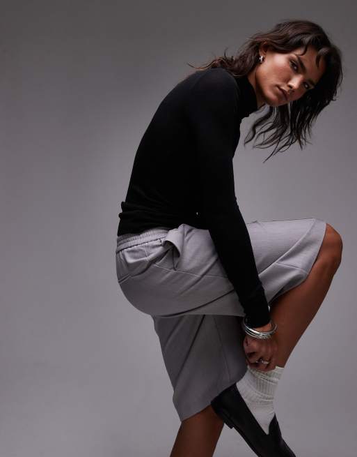 Top negro con cuello alto de punto de canalé de lana de merino de ARKET