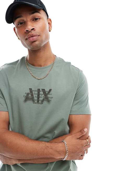 Camiseta verde de corte cuadrado con logo en el pecho de Armani Exchange