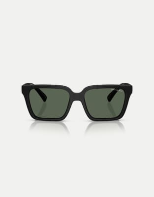 Gafas de sol negro mate con montura rectangular y lentes verdes de Armani Exchange