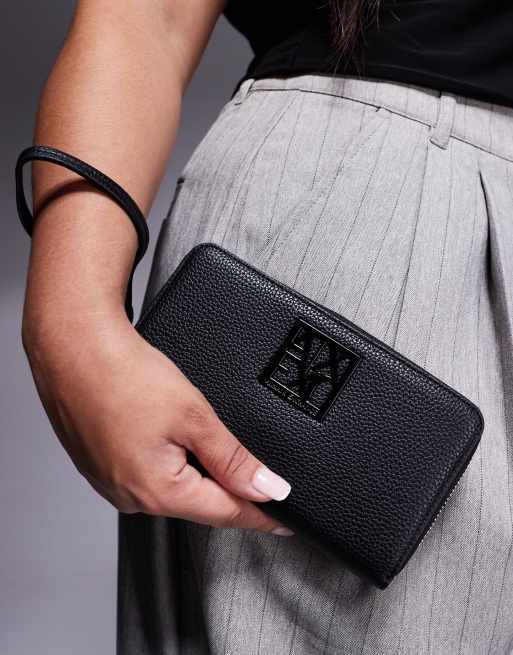 Monedero negro con cremallera en el contorno y logo de Armani Exchange