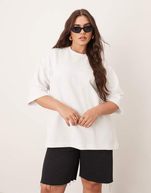 Camiseta blanca extragrande con detalle de costuras de tejido grueso de ARRANGE Curve