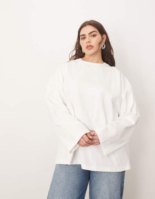 Camiseta blanca extragrande de manga larga de algodón de ARRANGE Curve