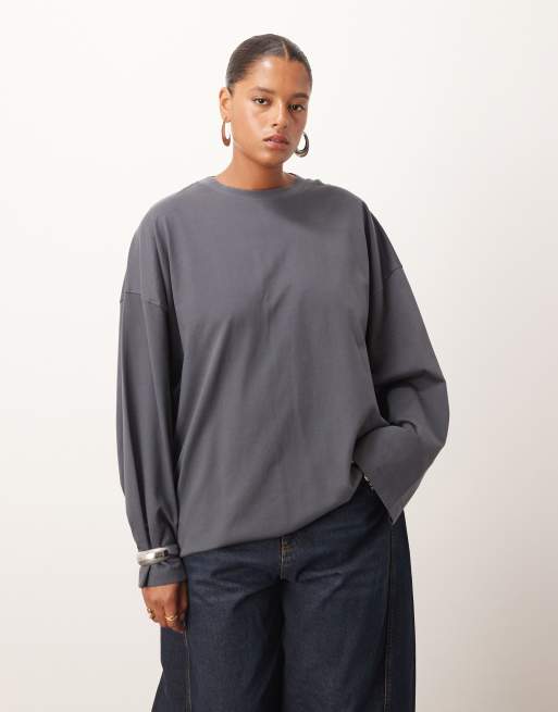 Camiseta gris carbón extragrande de manga larga de algodón de ARRANGE Curve