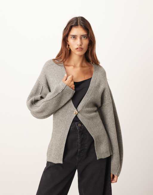 Cárdigan gris con cintura entallada y mangas ovoides de ARRANGE