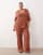 Conjunto color terracota de top con solapas y pantalones de pernera recta de croché de ARRANGE Curve