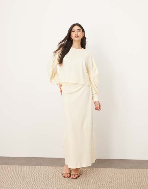 Falda larga amarillo crema de corte recto de tejido grueso texturizado premium de ARRANGE (parte de un conjunto)
