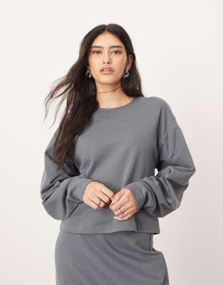 Top gris carbón de corte cuadrado con detalle de pliegue en las mangas de tejido texturizado de punto de ARRANGE (parte de un conjunto)