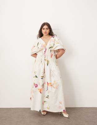 Vestido largo con cintura ceñida, estampado floral y detalle plisado de ARRANGE Curve