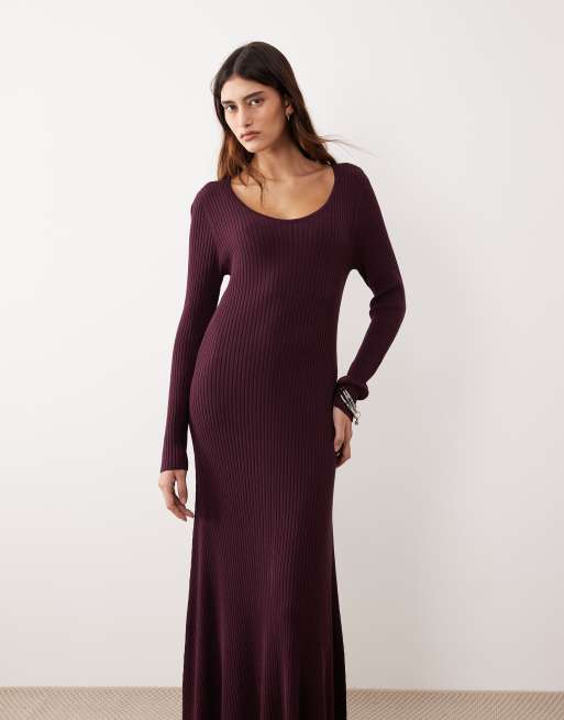 Vestido largo rojo cereza con cuello ancho de canalé de ARRANGE