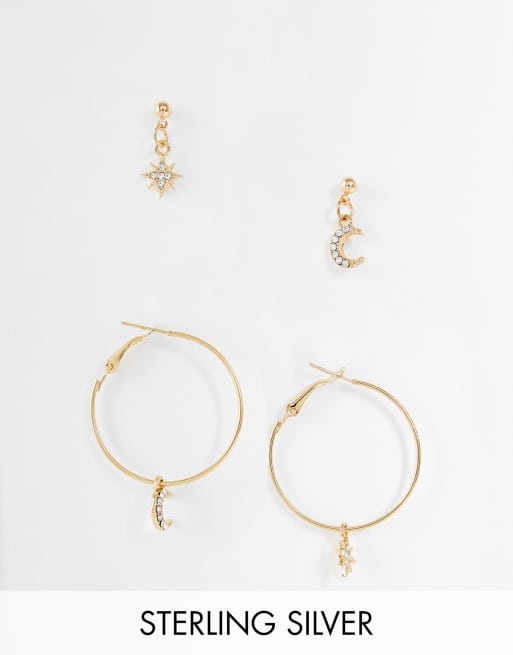 Pack de pendientes dorados con detalles de luna y estrellas de Ashiana