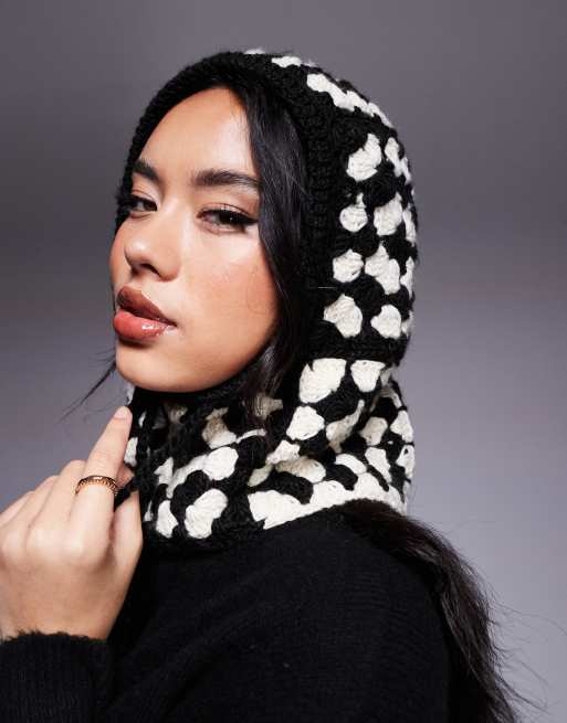 Pasamontañas negro y blanco de punto de croché Ski de 4505