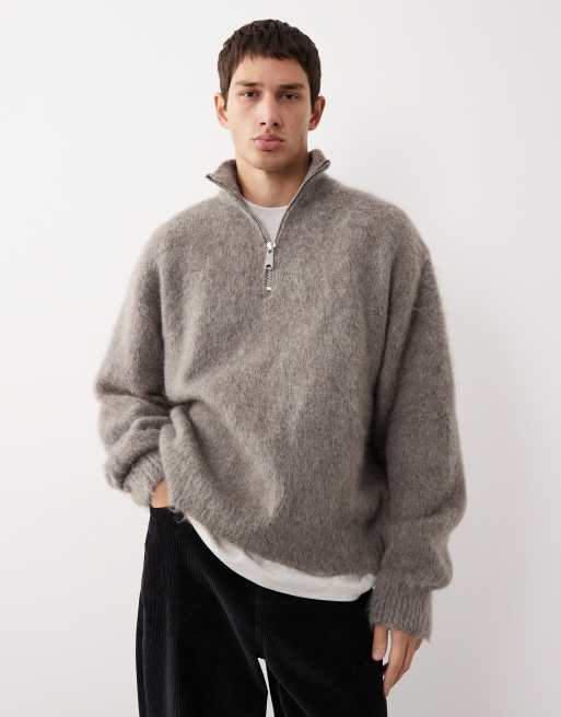 Jersey marrón extragrande con cuello alzado de punto de mezcla de lana y lana de mohair de ASOS COLLECTIVE