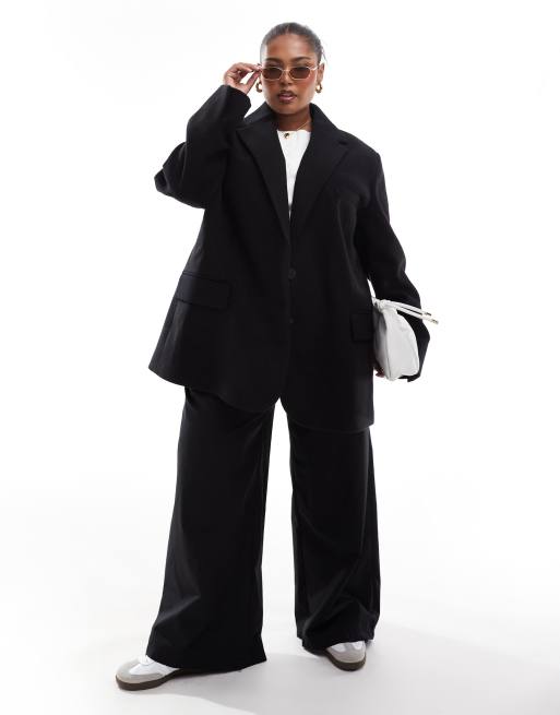 Americana de vestir negra de lana sintética de ASOS DESIGN Curve