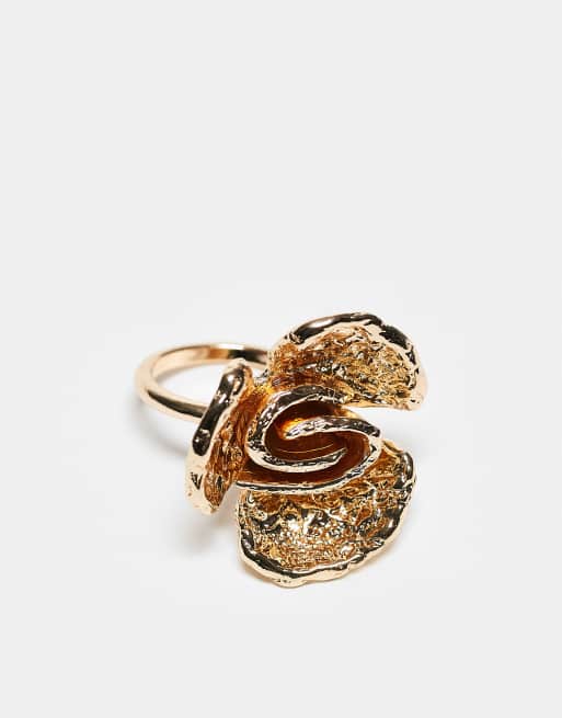 Anillo dorado con diseño de flor texturizada de ASOS DESIGN Curve