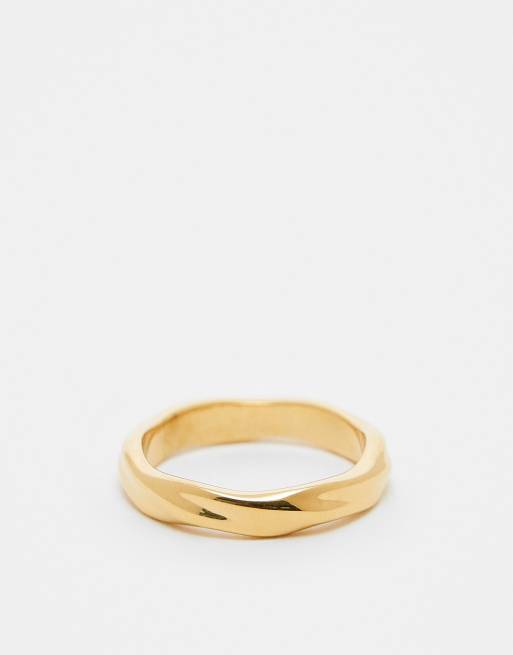 Anillo dorado con diseño retorcido de acero inoxidable resistente al agua de ASOS DESIGN Curve