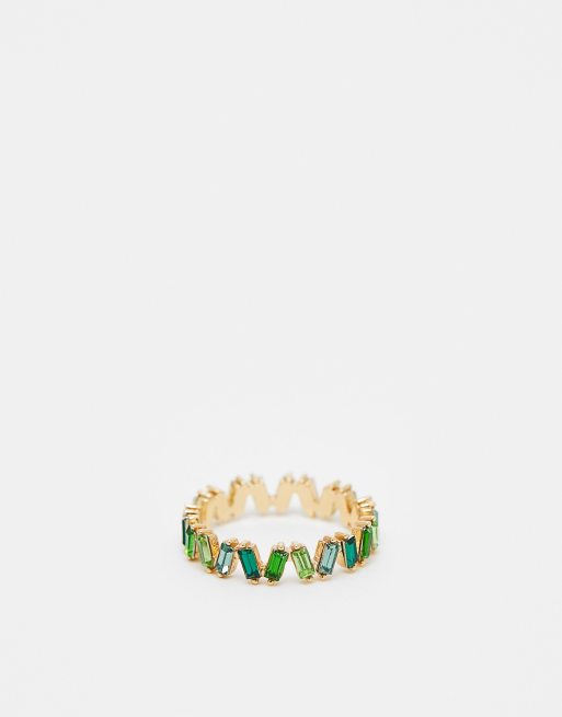 Anillo dorado con piedras en tonos verdes de talla baguette de ASOS DESIGN Curve