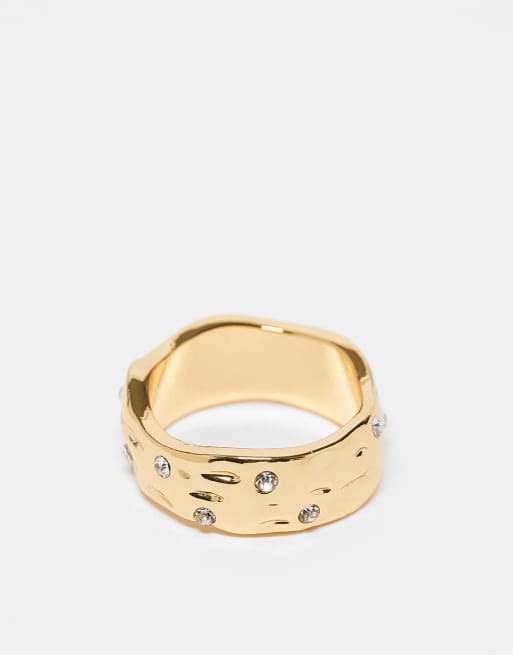 Anillo efecto fundido chapado en oro de 14 quilates con detalle de cristales de ASOS DESIGN Curve
