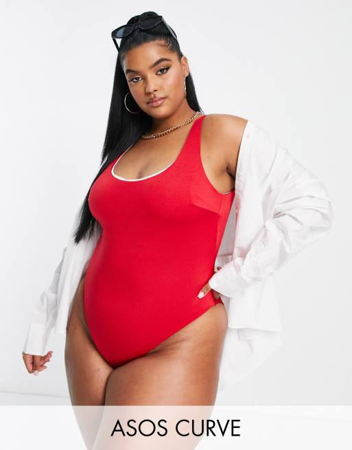 Bañador rojo brillante con cuello ancho de ASOS DESIGN Curve