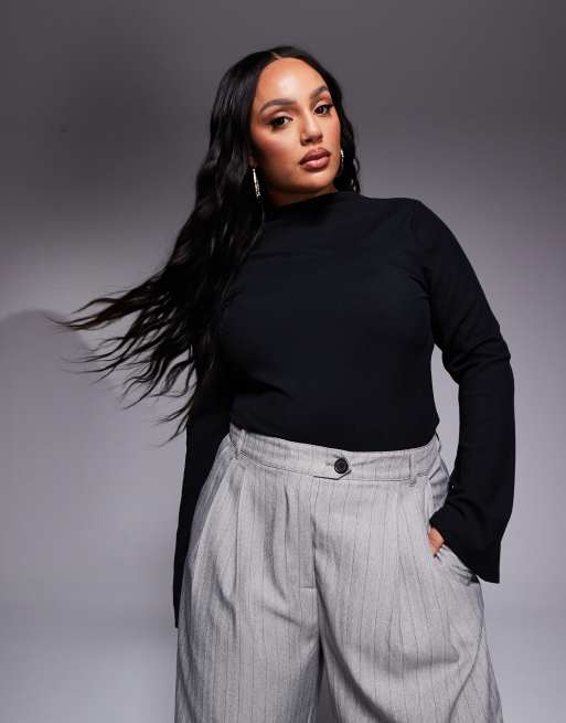 Body negro con mangas acampanadas de canalé de ASOS DESIGN Curve