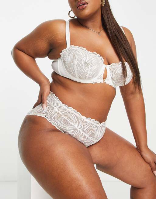 Braguitas brasileñas de novia blancas de talle alto con estampado ondulado metalizado de ASOS DESIGN Curve