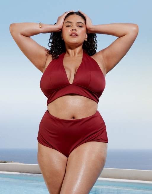 Braguitas de bikini burdeos de talle alto Maya Mix & Match de ASOS DESIGN Curve