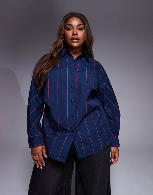 Camisa azul a rayas rojas extragrande con detalle entallado en la cintura de ASOS DESIGN Curve