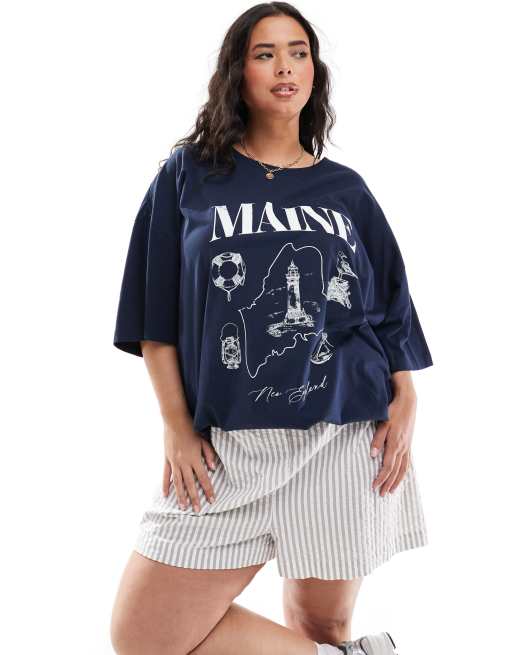 Camiseta azul marino extragrande con estampado gráfico "Maine" de ASOS DESIGN Curve