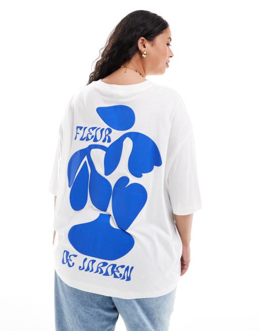 Camiseta boyfriend blanca con estampado gráfico "Fleur de jardin" de tejido texturizado de ASOS DESIGN Curve