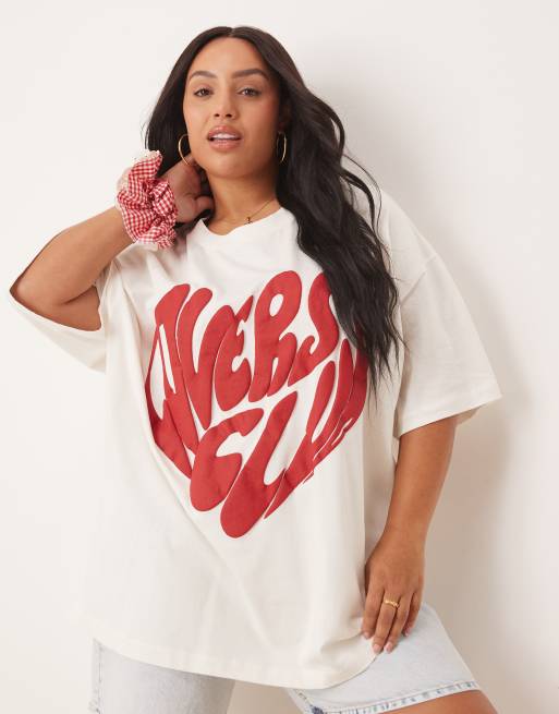 Camiseta color crema extragrande con estampado gráfico "Lovers Club" de ASOS DESIGN Curve