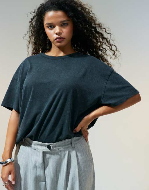 Camiseta extragrande con lavado gris carbón de ASOS DESIGN Curve