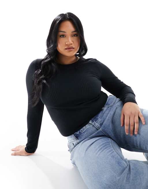 Camiseta negra de manga larga de canalé transparente de ASOS DESIGN Curve