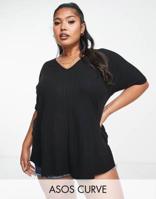 Camiseta negra extragrande con cuello de pico de canalé de ASOS DESIGN Curve