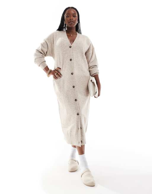 Cárdigan largo color piedra de ASOS DESIGN Curve