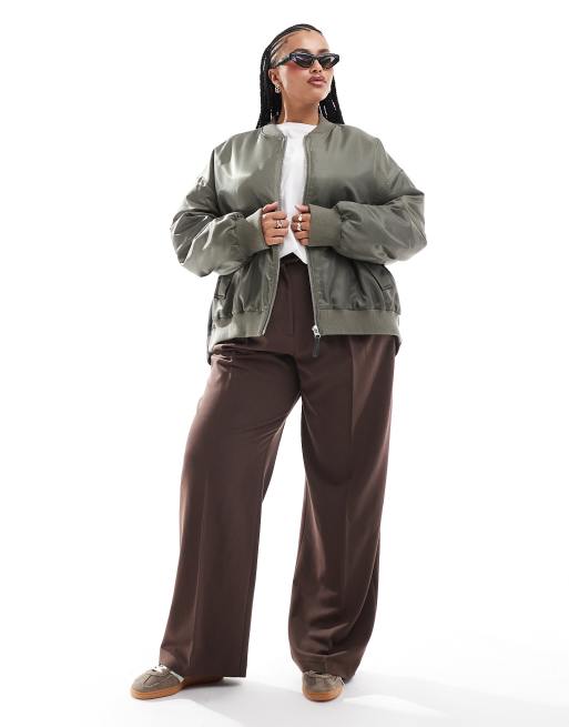 Chaqueta bomber caqui y gris con diseño dividido de ASOS DESIGN Curve
