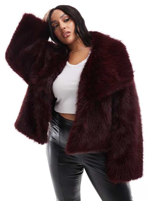 Chaqueta corta burdeos de piel sintética de ASOS DESIGN Curve