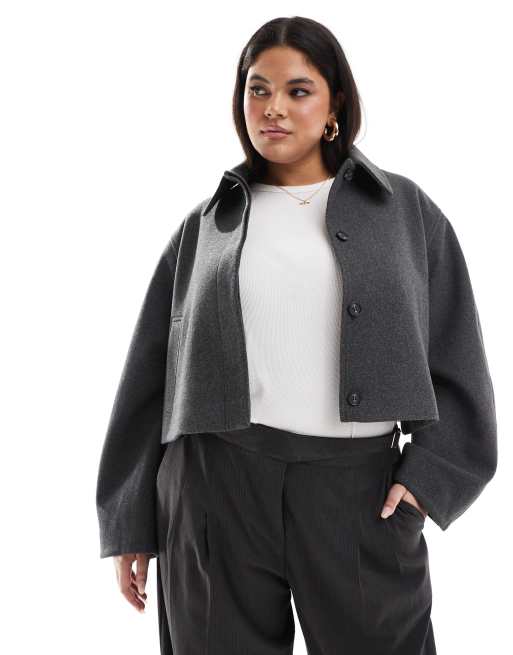 Chaqueta gris carbón con solapas de ASOS DESIGN Curve