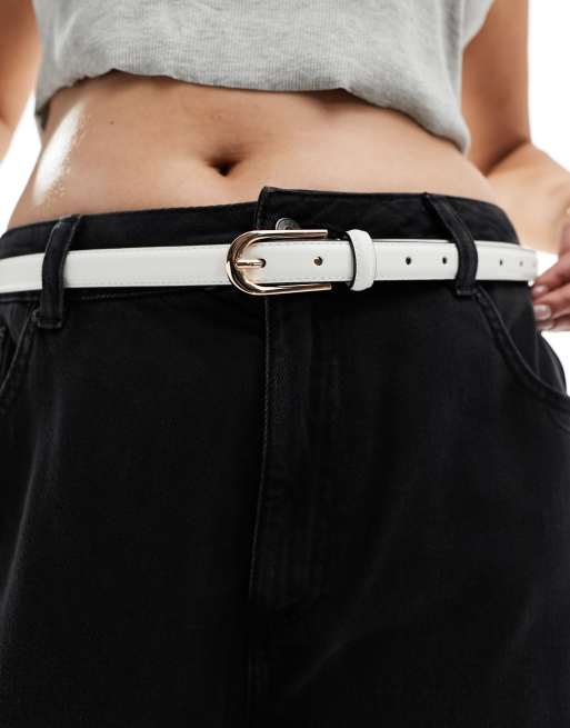 Cinturón blanco estrecho con diseño de media luna para cintura y cadera de ASOS DESIGN Curve
