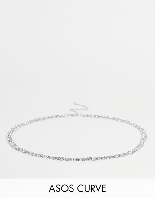 Cinturón de cadena plateada estrecha con incrustaciones de cristal de ASOS DESIGN Curve