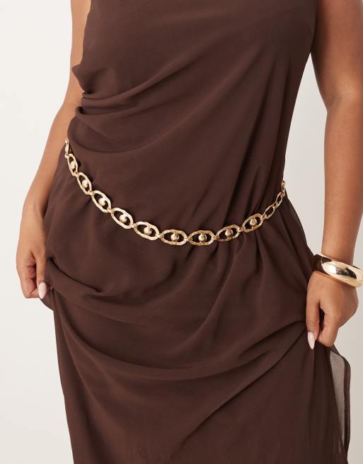 Cinturón dorado para cintura y cadera de cadena con esferas de ASOS DESIGN Curve