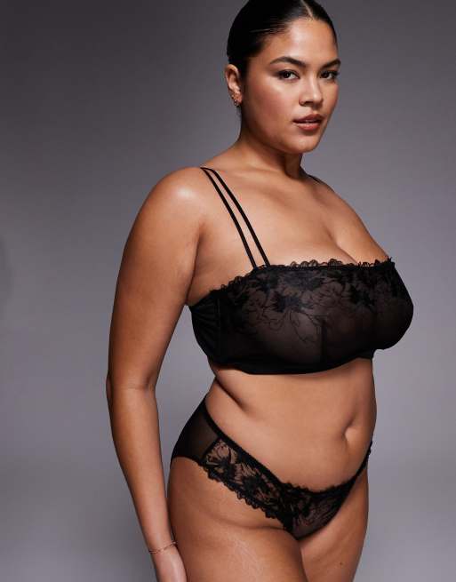 Conjunto de lencería negro con diseño floral bordado Tabitha de ASOS DESIGN Curve