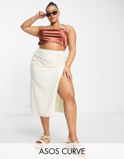 Falda midi color crema con caída, botones en el lateral y abertura hasta el muslo de ASOS DESIGN Curve