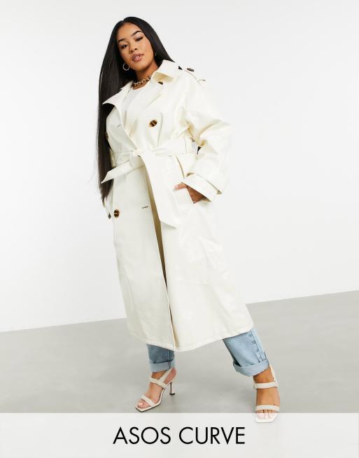 Gabardina de vinilo estilo cocodrilo en blanco de ASOS DESIGN Curve