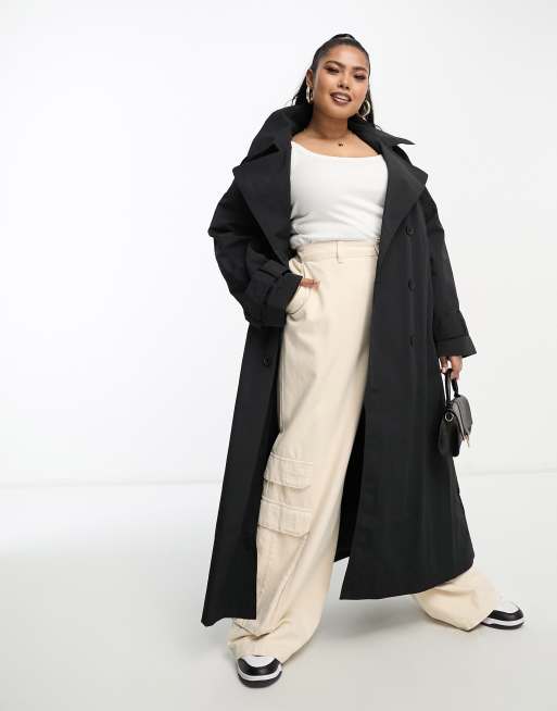 Gabardina negra deportiva con capucha extraíble de ASOS DESIGN Curve